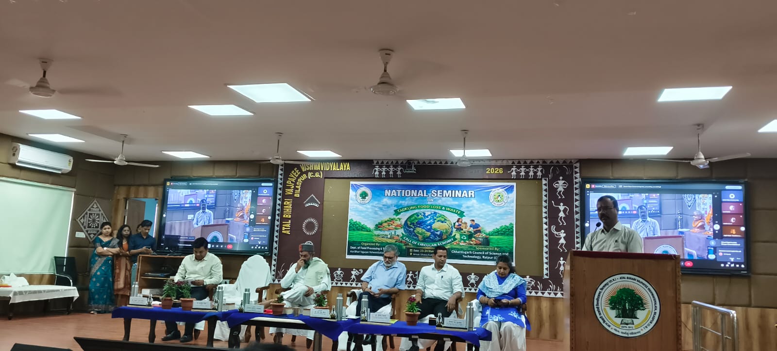 बिलासपुर 24 मार्च 2026/ अटल बिहारी वाजपेयी विश्वविद्यालय (पूर्व में बिलासपुर विश्वविद्यालय) के खाद्य प्रसंस्करण एवं प्रौद्योगिकी विभाग द्वारा ‘खाद्य हानि एवं बर्बादी’ विषय पर आयोजित दो दिवसीय राष्ट्रीय संगोष्ठी का मंगलवार को भव्य समापन हुआ।