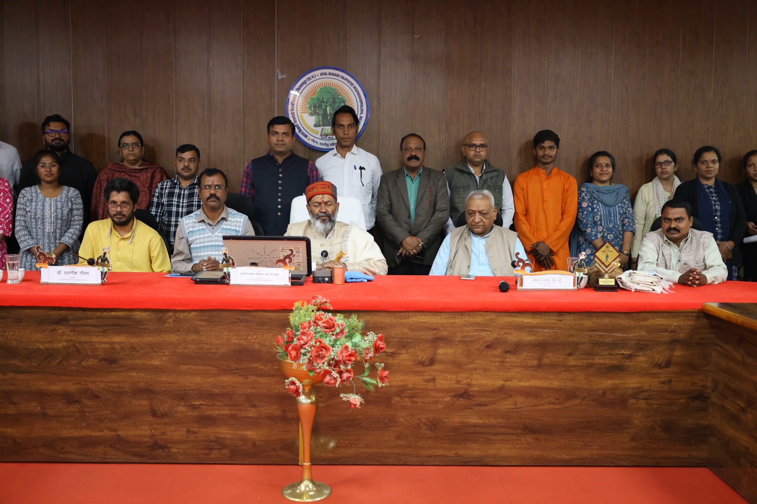 बिलासपुर।अटल बिहारी वाजपेयी विश्वविद्यालय में “प्रकृति की रक्षा – भविष्य की सुरक्षा” विषय पर “सुजलाम-सुफलाम” अभियान के अंतर्गत एक सार्थक एवं जागरूकता-आधारित व्याख्यान कार्यक्रम का आयोजन किया गया। कार्यक्रम का उद्देश्य विद्यार्थियों में जल संरक्षण, पर्यावरण संतुलन तथा प्रकृति के प्रति उत्तरदायित्व की भावना को सुदृढ़ करना रहा।कार्यक्रम का आयोजन विश्वविद्यालय के सभागार में किया गया।इस अवसर पर कार्यक्रम की अध्यक्षता आचार्य अरुण दिवाकर नाथ वाजपेयी जी ने की। अपने अध्यक्षीय संबोधन में उन्होंने कहा कि पर्यावरण संरक्षण की आदतें बचपन से ही विकसित की जानी चाहिए, क्योंकि वही आदतें भविष्य की सबसे बड़ी पूँजी बनती हैं। उन्होंने विद्यार्थियों को उपयोगवादी जीवनशैली में सकारात्मक परिवर्तन लाने का संदेश भी दिया।कार्यक्रम के मुख्य अतिथि राजेश जैन , अखिल भारतीय पर्यावरण प्रमुख ने “सुजलाम-सुफलाम” की अवधारणा को सरल शब्दों में समझाते हुए जल को जीवन का मूल आधार बताया और उसके संरक्षण पर विशेष बल दिया। उन्होंने विद्यार्थियों को दैनिक जीवन में छोटे-छोटे प्रयासों, विशेषकर वृक्षारोपण एवं वृक्षों की सुरक्षा, के लिए प्रेरित किया।उन्होंने कहा कि मनुष्य भोजन के बिना 5–6 दिन तक जीवित रह सकता है, जल के बिना 3–4 दिन तक, किंतु वायु के बिना कुछ क्षण भी संभव नहीं हैं—इसलिए वृक्षों की रक्षा एवं जल संरक्षण अत्यंत आवश्यक है।कार्यक्रम में गणेश जी (विभाग प्रचारक, राष्ट्रीय स्वयंसेवक संघ) तथा अक्षय अलकारी (प्रांत संयोजक, बिलासपुर) की गरिमामयी उपस्थिति भी रही, जिन्होंने पर्यावरण संरक्षण जैसे सामाजिक दायित्वों में युवाओं की सक्रिय भागीदारी को अत्यंत आवश्यक बताया।कार्यक्रम का संचालन एवं अतिथि परिचय डॉ. अतुल दुबे द्वारा सुव्यवस्थित एवं प्रभावशाली ढंग से किया गया, जिससे कार्यक्रम पूरे समय अनुशासित और उद्देश्यपूर्ण बना रहा।एंकरिंग डॉ. महेंद्र मेहता द्वारा की गई।कार्यक्रम के अंत में डॉ. तारनीश गौतम द्वारा धन्यवाद ज्ञापन प्रस्तुत किया गया। उन्होंने मुख्य अतिथि, विशिष्ट अतिथियों,विश्वविद्यालय प्रशासन, शिक्षकों एवं विद्यार्थियों के प्रति आभार व्यक्त करते हुए कहा कि इस प्रकार के कार्यक्रम विद्यार्थियों के सर्वांगीण विकास में महत्वपूर्ण भूमिका निभाते हैं। साथ ही विश्वविद्यालय को पर्यावरण संरक्षण के क्षेत्र में एक मॉडल विश्वविद्यालय के रूप में विकसित करने पर भी जोर दिया गया।विश्वविद्यालय प्रशासन ने भविष्य में भी विद्यार्थियों के नैतिक, सामाजिक एवं पर्यावरणीय विकास से जुड़े ऐसे कार्यक्रमों के सतत आयोजन की प्रतिबद्धता व्यक्त की। डॉ गौरव साहू डॉ अंकुर शुक्ला डॉ सुमोना भट्टाचार्य डॉ