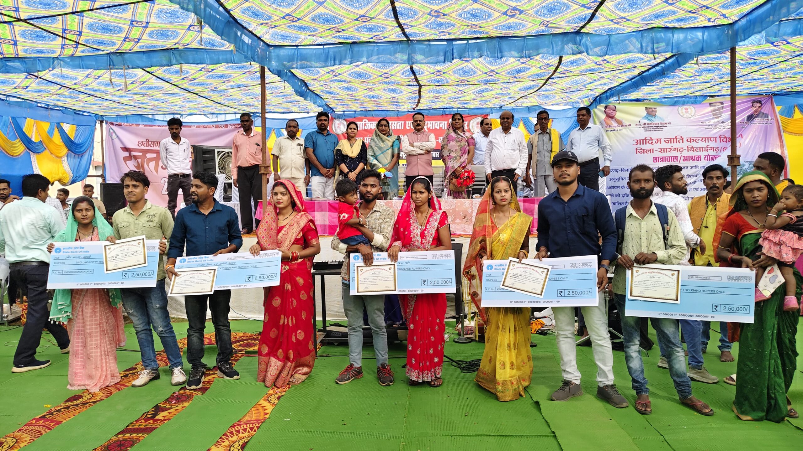 इस अवसर पर हितग्राही प्रदीप आजाद एवं उषा कर्ष , ओमप्रकाश चौहान एवं अमना साहू ,नंदलाल रात्रे एवं किरन निषाद ,राहूल सारथी एवं निकिता गिरी,धनेश्वर प्रसाद साहू एवं कुलेश्वरी, लक्ष्मण घृतलहरे एवं सुस्मिता जायसवाल, दिलीप चौहान एवं यामिनी वैष्णव को अंतर्जातीय विवाह प्रोत्साहन राशि 2 लाख 50 हजार रुपए का प्रतीकात्मक चेक एवं प्रशस्ति पत्र वितरण किया गया।