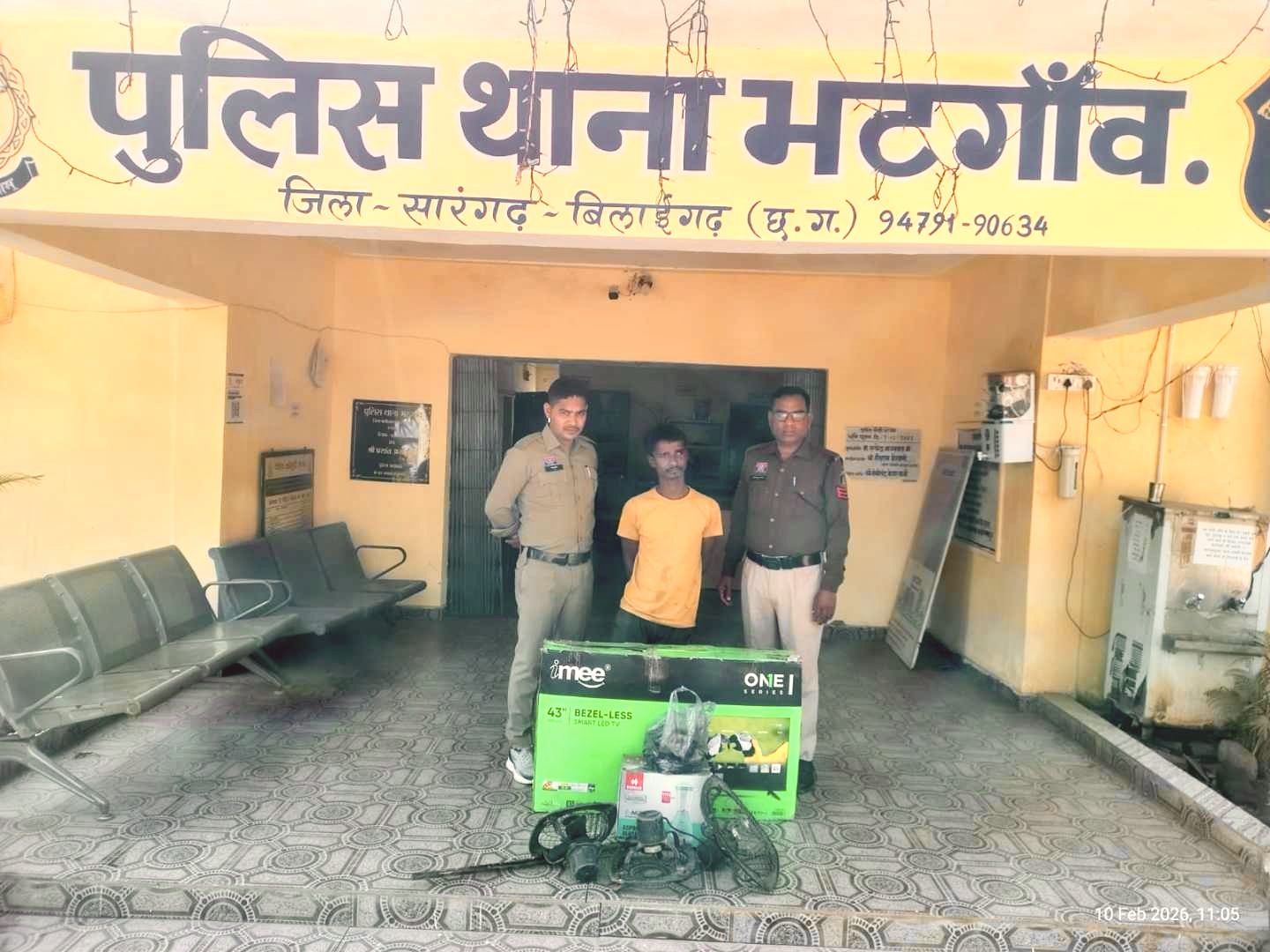 कुल मिलाकर ₹28,500 मूल्य का सामान चोरी कर फरार हो गया,शिकायत के आधार पर थाना भटगांव में आरोपी के विरुद्ध अपराध पंजीबद्ध कर विवेचना प्रारंभ की गई। विवेचना के दौरान पुलिस ने आरोपी को तत्काल गिरफ्तार कर माननीय न्यायालय में प्रस्तुत किया, जहां से उसे न्यायिक रिमांड पर जेल भेज दिया गया।