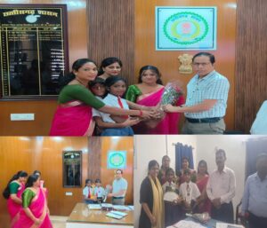 कलेक्टर से वर्ड पावर चैंपियनशिप विजेता नंदिनी चौहान और रेनू पटेल ने की मुलाकात