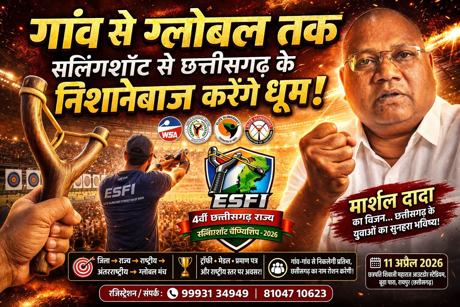 रायपुर 4 अप्रैल 2026/ छत्तीसगढ़ के युवाओं के लिए खेल की दुनिया में बड़ा धमाका होने जा रहा है—गांव की गलियों से निकलकर अब निशानेबाज़ सीधे अंतरराष्ट्रीय मंच तक पहुंचेंगे, क्योंकि एलीट स्लिंगशॉट एसोसिएशन ऑफ छत्तीसगढ़ के नेतृत्व में पहली बार स्लिंगशॉट खेल को राज्य में संगठित पहचान मिल रही है और इसके पीछे प्रदेश अध्यक्ष दुर्जन सिंह धुर्वे (मार्शल दादा)का बड़ा विज़न साफ दिखाई दे रहा है, जिन्होंने साफ कहा है कि यह सिर्फ एक प्रतियोगिता नहीं बल्कि छत्तीसगढ़ की छुपी प्रतिभाओं को दुनिया तक पहुंचाने का मिशन है, इसी कड़ी में 4वीं छत्तीसगढ़ स्टेट स्लिंगशॉट चैम्पियनशिप 2026 युवाओं के लिए सुनहरा मौका बनकर सामने आई है जहां खिलाड़ी अपनी सटीकता, एकाग्रता और कौशल का दम दिखाएंगे, प्रतियोगिता की शुरुआत जिला और ब्लॉक स्तर से होगी जहां स्थानीय खिलाड़ी टारगेट शूटिंग के जरिए अपनी प्रतिभा साबित करेंगे और यहीं से चुने गए खिलाड़ी राज्य स्तरीय चैम्पियनशिप में एंट्री पाएंगे, इस राज्य स्तरीय मुकाबले में करीब 200 प्रतिभागियों के बीच कड़ी टक्कर देखने को मिलेगी और यहीं से चुने गए टॉप खिलाड़ी राष्ट्रीय स्तर यानी ऑल इंडिया स्लिंगशॉट प्रतियोगिता में उतरेंगे जहां देशभर के खिलाड़ियों से सीधी भिड़ंत होगी, इसके बाद सर्वश्रेष्ठ खिलाड़ी अंतरराष्ट्रीय मंच पर भारत का प्रतिनिधित्व करेंगे, इस पूरी प्रक्रिया को अंतरराष्ट्रीय स्तर से जोड़ने में World Slingshot Association की अहम भूमिका है जो स्विट्ज़रलैंड के कानून के तहत स्थापित एक वैश्विक संस्था है और ओलंपिक मूल्यों के साथ इस खेल को आगे बढ़ा रही है, वहीं भारत में इस खेल को तकनीकी मजबूती देने का काम Elite Slingshot Federation of India कर रही है जो 30 वर्षों के अनुभव के साथ खिलाड़ियों को राष्ट्रीय और अंतरराष्ट्रीय मंच से जोड़ रही है, प्रतियोगिता का पूरा फॉर्मेट बेहद सख्त और पारदर्शी रखा गया है जिसमें तय दूरी से निशाना लगाना होगा, सीमित शॉट्स मिलेंगे और हर शॉट की सटीकता के आधार पर स्कोर तय होगा, सबसे ज्यादा अंक पाने वाला खिलाड़ी विजेता घोषित होगा, विजेताओं को ट्रॉफी, मेडल, प्रमाण पत्र के साथ राष्ट्रीय प्रतियोगिता में जाने का मौका मिलेगा, इस पहल का असली मकसद सिर्फ मेडल जीतना नहीं बल्कि गांव-गांव में खेल संस्कृति को मजबूत करना, युवाओं में अनुशासन और आत्मविश्वास बढ़ाना और कम संसाधनों में बड़ा सपना देखने की ताकत देना है, आने वाले समय में हर जिले में प्रशिक्षण केंद्र खोलने, स्कूल-कॉलेज तक खेल पहुंचाने और राष्ट्रीय लीग तैयार करने की योजना भी बनाई जा रही है, इस बीच इस बहुप्रतीक्षित प्रतियोगिता का आयोजन 11 अप्रैल 2026 को छत्रपति शिवाजी महाराज आउटडोर स्टेडियम बूढ़ापारा रायपुर में किया जाएगा, जहां राज्यभर के निशाने