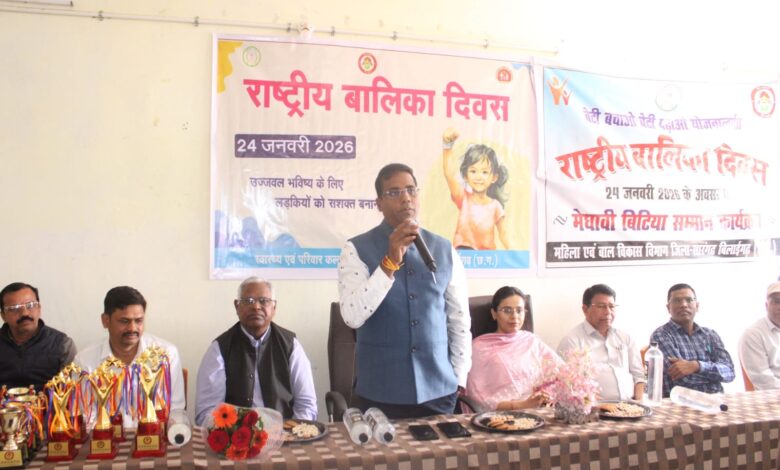 कलेक्टर ने अपने उद्बोधन में कहा कि अगर हमारे बालिका स्वस्थ रहेंगे तब ही बालिका का सही विकास हो सकेगा। इसके लिए उनका पोषण आहार अच्छा हो। नियमित स्वास्थ्य परीक्षण हो, हीमोग्लोबिन की जांच कराए क्योंकि हीमोग्लोबिन की मात्रा कम होने पर बालिकाओं को खून की कमी होती है जिसे एनीमिया या रक्त अल्पता कहते हैं। हीमोग्लोबिन कम होने पर बच्चे कमजोर रहते है। ऐसे बच्चे में सीखने, समझने की क्षमता प्रभावित होती है तथा ऐसे बच्चों में ध्यान एकाग्र नहीं होती परिणाम स्कूल में पढ़ाई में पिछड़ जाते और प्रतियोगी परीक्षा में पीछे रह जाते हैं। मुख्य चिकित्सा एवं स्वास्थ्य अधिकारी में भी एनीमिया मुक्त भारत अभियान के अंतर्गत प्रदाय की जाने वाले योजना जिसमें विफ़्स की गोली को नियमित रूप से प्रत्येक मंगलवार को खाना खाने के बाद खिलाई जाती है। ऐसे वर्ष में 52 गोली खाने होते हैं तथा खानपान भी संतुलित होनी चाहिए। इस अवसर पर डीपीओ उत्तम प्रसाद ने भी बालिकाओं को शिक्षा, पढ़ाई पर फोकस करने की बात कही। आज के इस कार्यक्रम में जिले भर से ऐसे बालिका जो पढ़ाई में अच्छे प्रदर्शन किए है उनको पांच हजारे रुपए की चेक प्रदान किए जिसमे मनीषा साहू, चंद्रप्रभा आदित्य और भूमिका प्रधान तीनों बालिका 10वीं में अच्छे अंक प्राप्त किए हैं। इसी प्रकार 12वी में अच्छे अंक प्राप्त करने वाले बालिकाओं में श्रुति बारिक, ममता सोनवानी और प्रीति टंडन को भी 5000 के चेक कलेक्टर के हाथों प्रदान की गई। इसके अतिरिक्त छिंद हाईस्कूल की बालिका जिन्होंने अच्छे अंक से परीक्षा उत्तीर्ण हुए है उनको स्वास्थ्य विभाग के तरफ से मोमेंटो देखकर सम्मानित किया गया। इसके अलावा ऐसे बच्चे के माता पिता जिनके केवल पुत्रियां है उन दंपत्तियों को भी सम्मानित किया गया। ऐसे 6 बच्चे थे जिनके भाई नहीं है उनको भी मोमेंटो दे कर सम्मानित किया गया।कार्यक्रम में रंगोली प्रतियोगिता का आयोजन किया गया था जिसमें प्रथम स्थान में मुस्कान जांगड़े, द्वितीय स्थान संयुक्त रूप से पूर्णिमा और आकांक्षा तथा तृतीय स्थान पर सीमा, दिशा और हेमकुमारी रही। इन सभी बालिकाओं को मोमेंटो देकर सम्मानित किया गया।