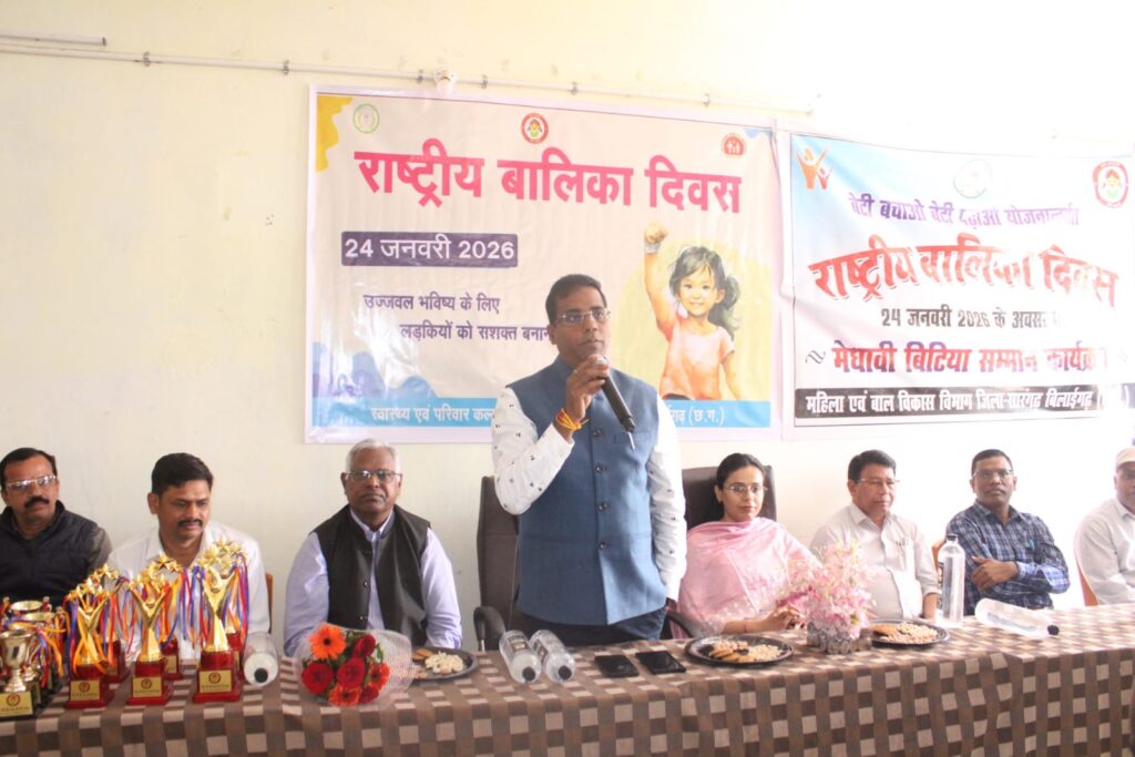 कलेक्टर ने अपने उद्बोधन में कहा कि अगर हमारे बालिका स्वस्थ रहेंगे तब ही बालिका का सही विकास हो सकेगा। इसके लिए उनका पोषण आहार अच्छा हो। नियमित स्वास्थ्य परीक्षण हो, हीमोग्लोबिन की जांच कराए क्योंकि हीमोग्लोबिन की मात्रा कम होने पर बालिकाओं को खून की कमी होती है जिसे एनीमिया या रक्त अल्पता कहते हैं। हीमोग्लोबिन कम होने पर बच्चे कमजोर रहते है। ऐसे बच्चे में सीखने, समझने की क्षमता प्रभावित होती है तथा ऐसे बच्चों में ध्यान एकाग्र नहीं होती परिणाम स्कूल में पढ़ाई में पिछड़ जाते और प्रतियोगी परीक्षा में पीछे रह जाते हैं। मुख्य चिकित्सा एवं स्वास्थ्य अधिकारी में भी एनीमिया मुक्त भारत अभियान के अंतर्गत प्रदाय की जाने वाले योजना जिसमें विफ़्स की गोली को नियमित रूप से प्रत्येक मंगलवार को खाना खाने के बाद खिलाई जाती है। ऐसे वर्ष में 52 गोली खाने होते हैं तथा खानपान भी संतुलित होनी चाहिए। इस अवसर पर डीपीओ उत्तम प्रसाद ने भी बालिकाओं को शिक्षा, पढ़ाई पर फोकस करने की बात कही। आज के इस कार्यक्रम में जिले भर से ऐसे बालिका जो पढ़ाई में अच्छे प्रदर्शन किए है उनको पांच हजारे रुपए की चेक प्रदान किए जिसमे मनीषा साहू, चंद्रप्रभा आदित्य और भूमिका प्रधान तीनों बालिका 10वीं में अच्छे अंक प्राप्त किए हैं। इसी प्रकार 12वी में अच्छे अंक प्राप्त करने वाले बालिकाओं में श्रुति बारिक, ममता सोनवानी और प्रीति टंडन को भी 5000 के चेक कलेक्टर के हाथों प्रदान की गई। इसके अतिरिक्त छिंद हाईस्कूल की बालिका जिन्होंने अच्छे अंक से परीक्षा उत्तीर्ण हुए है उनको स्वास्थ्य विभाग के तरफ से मोमेंटो देखकर सम्मानित किया गया। इसके अलावा ऐसे बच्चे के माता पिता जिनके केवल पुत्रियां है उन दंपत्तियों को भी सम्मानित किया गया। ऐसे 6 बच्चे थे जिनके भाई नहीं है उनको भी मोमेंटो दे कर सम्मानित किया गया।कार्यक्रम में रंगोली प्रतियोगिता का आयोजन किया गया था जिसमें प्रथम स्थान में मुस्कान जांगड़े, द्वितीय स्थान संयुक्त रूप से पूर्णिमा और आकांक्षा तथा तृतीय स्थान पर सीमा, दिशा और हेमकुमारी रही। इन सभी बालिकाओं को मोमेंटो देकर सम्मानित किया गया।