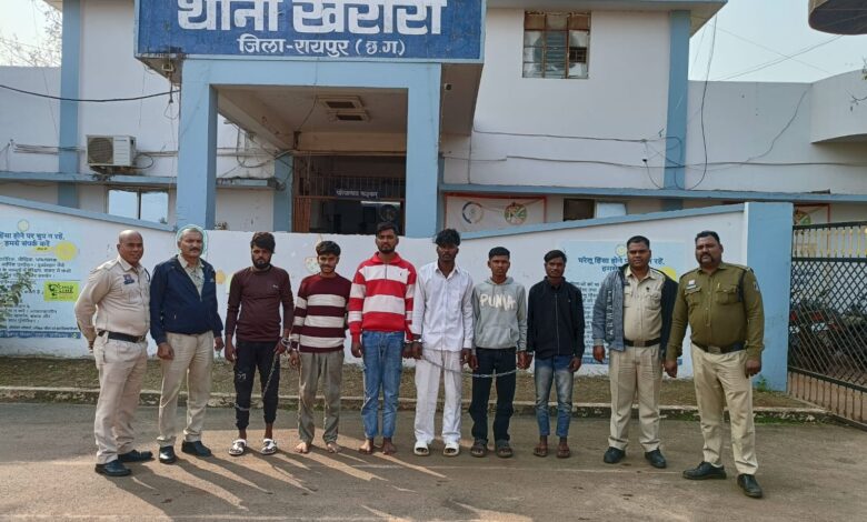 यह कार्रवाई पुलिस अधीक्षक श्वेता सिन्हा श्रीवास्तव के निर्देश, अतिरिक्त पुलिस अधीक्षक प्रशांत शुक्ला के मार्गदर्शन एवं एसडीओपी वीरेन्द्र चतुर्वेदी के पर्यवेक्षण में थाना प्रभारी खरोरा के नेतृत्व में की गई। सभी आरोपियों को न्यायालय में पेश कर न्यायिक रिमांड पर भेज दिया गया है।