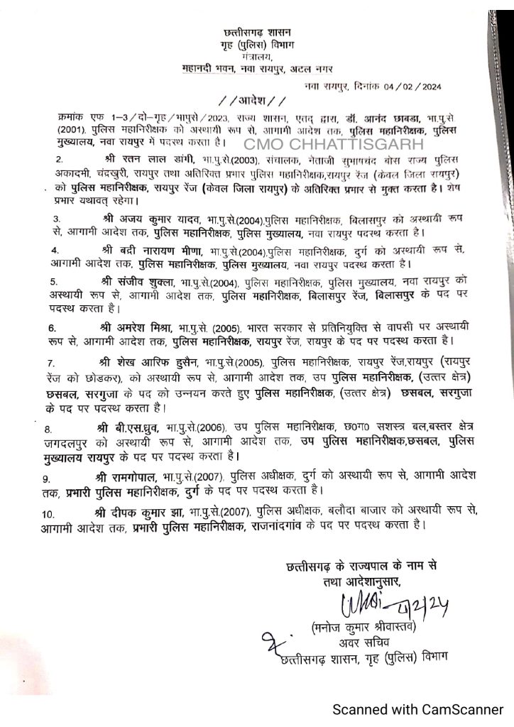 रेंज आईजी समेत 25 जिलों के पुलिस कप्तान का तबादला, जाने कौन होगा रायपुर का नया पुलिस कप्तान…
