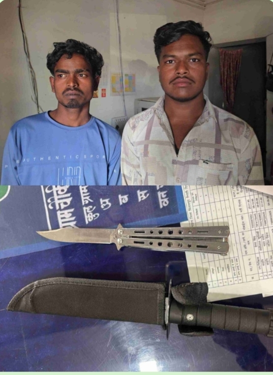 बिलासपुर 4 अप्रैल 2026/ थाना कोटा अंतर्गत चौकी बेलगहना पुलिस ने घातक हथियारों के साथ लूट के प्रयास के मामले में दो आरोपियों को गिरफ्तार कर बड़ी सफलता हासिल की है। पुलिस ने आरोपियों के कब्जे से बिना नंबर की मोटरसाइकिल सहित धारदार हथियार भी जब्त किए हैं। प्राप्त जानकारी के अनुसार, 1 अप्रैल 2026 की रात लगभग 10:30 बजे हरिल साय टोप्पों अपने साथियों निलिमा तिर्की एवं रामप्यारी तिर्की के साथ मरीज को अस्पताल में भर्ती कराकर वापस ग्राम विचारपुर लौट रहे थे। इसी दौरान बेलगहना-कोनचरा मार्ग के सुनसान जंगल क्षेत्र, नीलगिरी प्लांट के पास, बिना नंबर की मोटरसाइकिल सवार दो युवकों ने उनकी कार को रोकने का प्रयास किया और चाकू दिखाकर भयभीत करने लगे। स्थिति को भांपते हुए चालक हरिल साय ने सूझबूझ से वाहन को तेजी से आगे बढ़ाया, लेकिन आरोपी लगभग 7 किलोमीटर तक पीछा करते हुए ग्राम विचारपुर तक पहुंच गए। वहां उन्होंने फिर से कार सवारों को रोककर जान से मारने की धमकी देते हुए लूट का प्रयास किया। इसी बीचू ग्रामीणों के मौके पर पहुंचने से आरोपी घबराकर भाग निकले और अपनी मोटरसाइकिल घटनास्थल पर ही छोड़ गए। घटना की रिपोर्ट 2 अप्रैल को दर्ज कराई गई, जिसके बाद पुलिस ने तत्काल कार्रवाई करते हुए वरिष्ठ अधिकारियों के मार्गदर्शन में टीम गठित की। चौकी प्रभारी उप निरीक्षक हेमंत सिंह के नेतृत्व में पुलिस टीम ने चंद घंटों में ही दोनों आरोपियों को घेराबंदी कर गिरफ्तार कर लिया। सिद्धांत पाण्डेय उर्फ राज पाण्डेय (20 वर्ष), निवासी गंगानगर बेलगहना, राजकुमार पोर्ते उर्फ सोनू (20 वर्ष), निवासी करवा बेलगहना। पूछताछ में आरोपियों ने अपराध स्वीकार किया। उनके पास से एक खंजरनुमा चाकू एवं एक स्टील का फोल्डिंग चाकू बरामद किया गया। दोनों को गिरफ्तार कर न्यायिक अभिरक्षा में भेज दिया गया है। पुलिस के अनुसार, आरोपी सिद्धांत पाण्डेय का पूर्व में भी आपराधिक रिकॉर्ड रहा है, जिसमें बलात्कार (पॉक्सो) एवं आर्म्स एक्ट के मामले शामिल हैं। इस घटना में ग्रामीणों की सतर्कता और साहस की महत्वपूर्ण भूमिका रही, जिससे एक बड़ी वारदात टल गई। पुलिस टीम के सभी सदस्यों की इस त्वरित और प्रभावी कार्रवाई की सराहना की जा रही है।