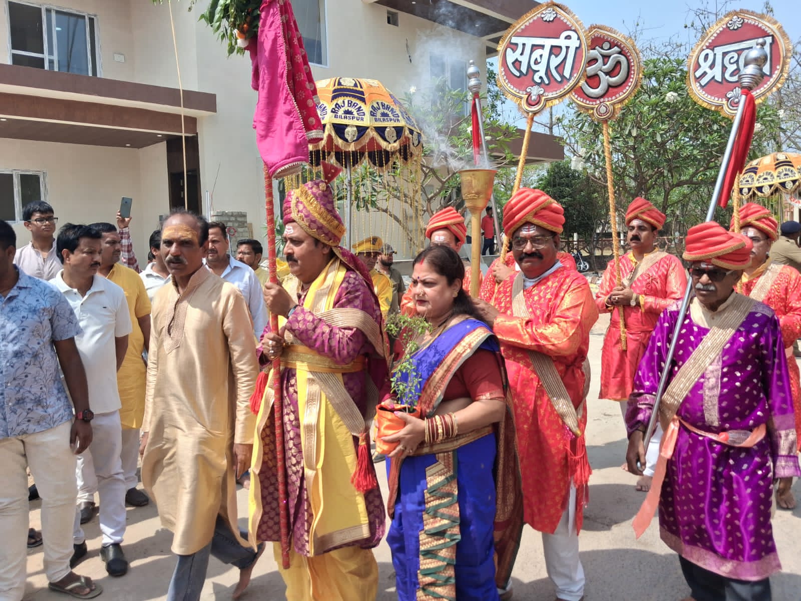पं सुदेश दुबे साथी ने बताया कि अलका एवेन्यू कालोनी उस्लापुर में सुबह 9 बजे श्री साईं बाबा की मूल चरण पादुका की शोभायात्रा निकाली गई। शोभायात्रा का भी साईं भक्तों ने आत्मीय स्वागत किया।दिन भर बिलासपुर , रायपुर, अभनपुर,कांकेर, दुर्ग, राजनांदगांव,सक्ती, कोरबा के साईं बाबा के भक्त दर्शनार्थ आते रहे लगातार प्रसाद वितरण होता रहा ।श्री साईं सच्चरित्र का पाठ सभी भक्तों ने क्रमवार किया ।साईं बाबा की मध्यान आरती, श्री साईं लक्षार्चना आरती एवं धूप आरती भक्तों ने श्रद्धा पूर्वक की।साई संध्या में पद्मश्री श्री मदन चौहान जी एवं बिलासपुर के सुप्रसिद्ध गायक पं अंचल शर्मा , ज्योति शर्मा के भजनों में भक्त झूमे।पद्मश्री मदन चौहान का सम्मान किया गया।
