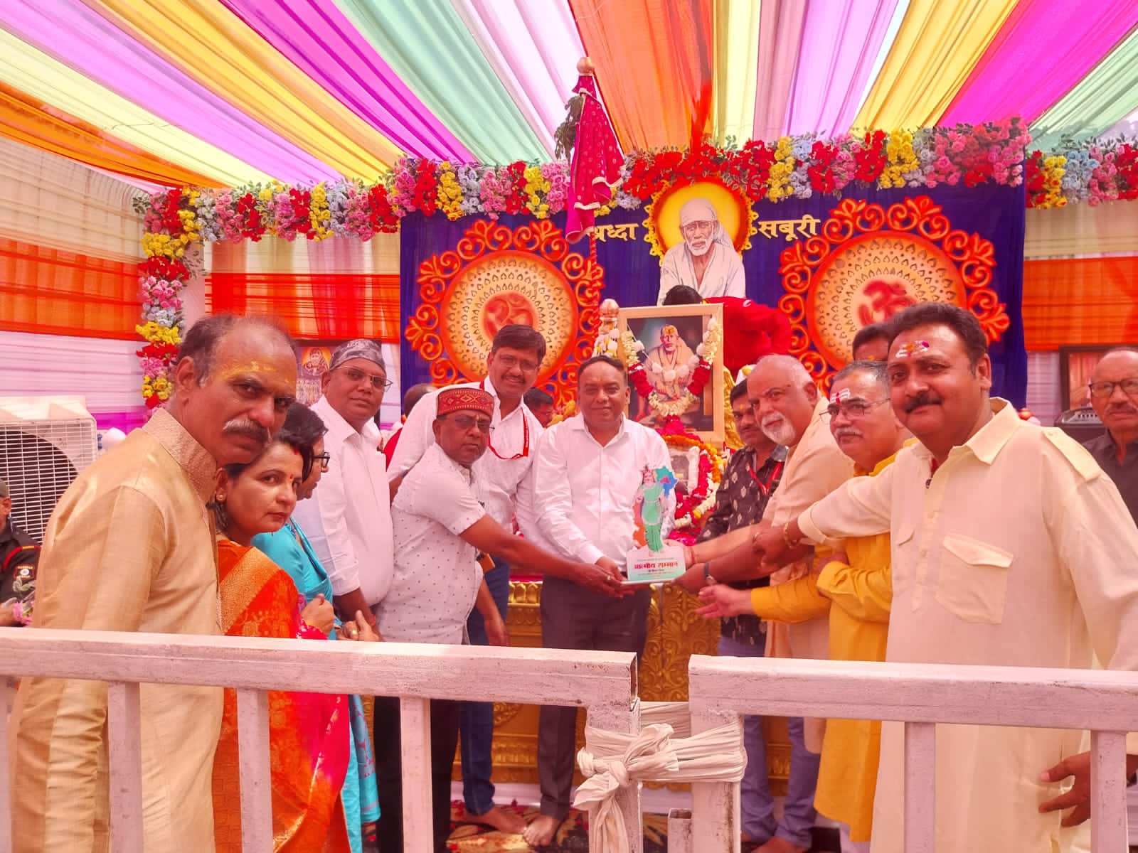 श्री साईं बाबा की मूल चरण पादुका के साथ शिरडी से पधारे समस्त पदाधिकारियों एवं कार्यकर्ताओं को स्नेह पूर्वक स्मृति चिन्ह भेंट कर सम्मानित किया गया ।आयोजन समिति के दिलीप पात्रीकर के मार्गदर्शन में नीरज मेहता, राजकुमार शुक्ल शिवा मिश्र, अरविन्द बोलर, विरेन्द्र चौधरी,सुदेश दुबे साथी, संतोष गुप्ते, हर्ष मिश्र, पूर्व पार्षद रविन्द्र सिंह,पार्षद महेश चन्द्रिका पुरे बबलू मदने, रतीश श्रीवास्तव सहित भक्तों ने समस्त व्यवस्था प्रबंधन किया।