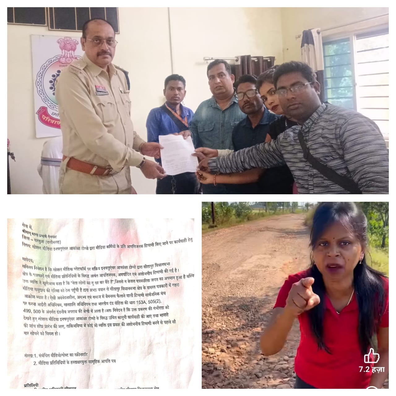 सरगुजा, 26 अक्टूबर 2025/सीतापुर विधानसभा क्षेत्र के पत्रकार आज सोशल मीडिया इनफ्लुएंसर आकांक्षा टोप्पो के विवादित बयान के विरोध में लामबंद हो गए हैं। वायरल वीडियो में आकांक्षा टोप्पो द्वारा पत्रकारों एवं मीडिया कर्मियों के खिलाफ अभद्र एवं आपत्तिजनक शब्दों का प्रयोग किए जाने से पत्रकार समुदाय में गहरा आक्रोश व्याप्त है।