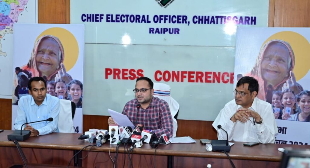 रायपुर 2 अप्रैल 2024/ अतिरिक्त मुख्य निर्वाचन पदाधिकारी श्री नीलेशकुमार महादेव क्षीरसागर की अध्यक्षता में आज मुख्य निर्वाचन पदाधिकारी कार्यालय के सभाकक्ष में लोकसभा निर्वाचन-2024 के दृष्टिगत सेवा मतदाताओं से डाक मतपत्रो की वापसी के संबंध में डाक विभाग के अधिकारियों के साथ बैठक आयोजित की गई।