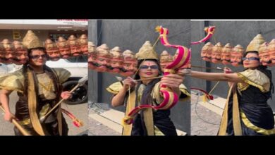 राखी सावंत ने रावण का अनोखा रूप धारण कर मुंबई की सड़कों पर किया धमाकेदार डांस