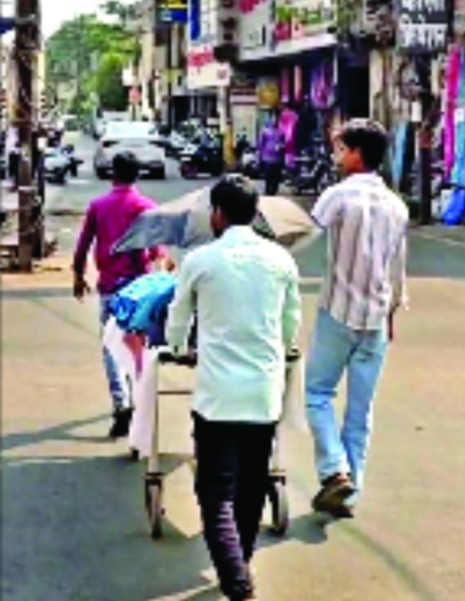 बिलासपुर। शहर में भीषण गर्मी के बीच मानवता को झकझोर देने वाला मामला सामने आया है। एक निजी अस्पताल से मरीज को स्ट्रेचर पर ही सड़क पार कर सोनोग्राफी सेंटर ले जाया गया, जिससे स्वास्थ्य व्यवस्था पर गंभीर सवाल खड़े हो गए हैं। जानकारी के अनुसार मिश्रा नर्सिंग होम से मरीज को सोनोग्राफी के लिए भेजा गया, लेकिन इसके लिए एम्बुलेंस या समुचित व्यवस्था उपलब्ध नहीं कराई गई। परिजन मरीज को स्ट्रेचर पर लिटाकर बीच सड़क से लेकर जाते दिखाई दिए। चिलचिलाती धूप में मरीज को बचाने के लिए केवल छाते का सहारा लिया गया, जो स्थिति की गंभीरता और लापरवाही को दर्शाता है। हैरानी की बात यह रही कि स्ट्रेचर के पीछे एक एम्बुलेंस भी चल रही थी, बावजूद इसके मरीज को उसमें शिफ्ट नहीं किया गया। घटना की तस्वीरें सामने आने के बाद लोगों में नाराजगी है और संबंधित अस्पताल प्रबंधन के खिलाफ कार्रवाई की मांग उठने लगी है।
