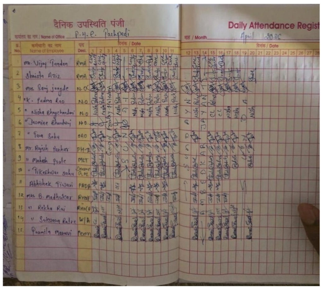स्वास्थ्य केंद्र में कुल 15 स्टाफ की तैनाती बताई गई है, लेकिन निरीक्षण के दौरान दोपहर 3 बजे के बाद अधिकांश कर्मचारी अनुपस्थित मिले। जबकि उनकी निर्धारित ड्यूटी सुबह 10 बजे से शाम 5 बजे तक है। मौके पर मौजूद मरीजों ने बताया कि यह कोई एक दिन की समस्या नहीं, बल्कि लंबे समय से यही स्थिति बनी हुई है। कर्मचारी नियमित रूप से उपस्थिति रजिस्टर में हस्ताक्षर कर लेते हैं, लेकिन दोपहर होते ही अस्पताल छोड़ देते हैं।