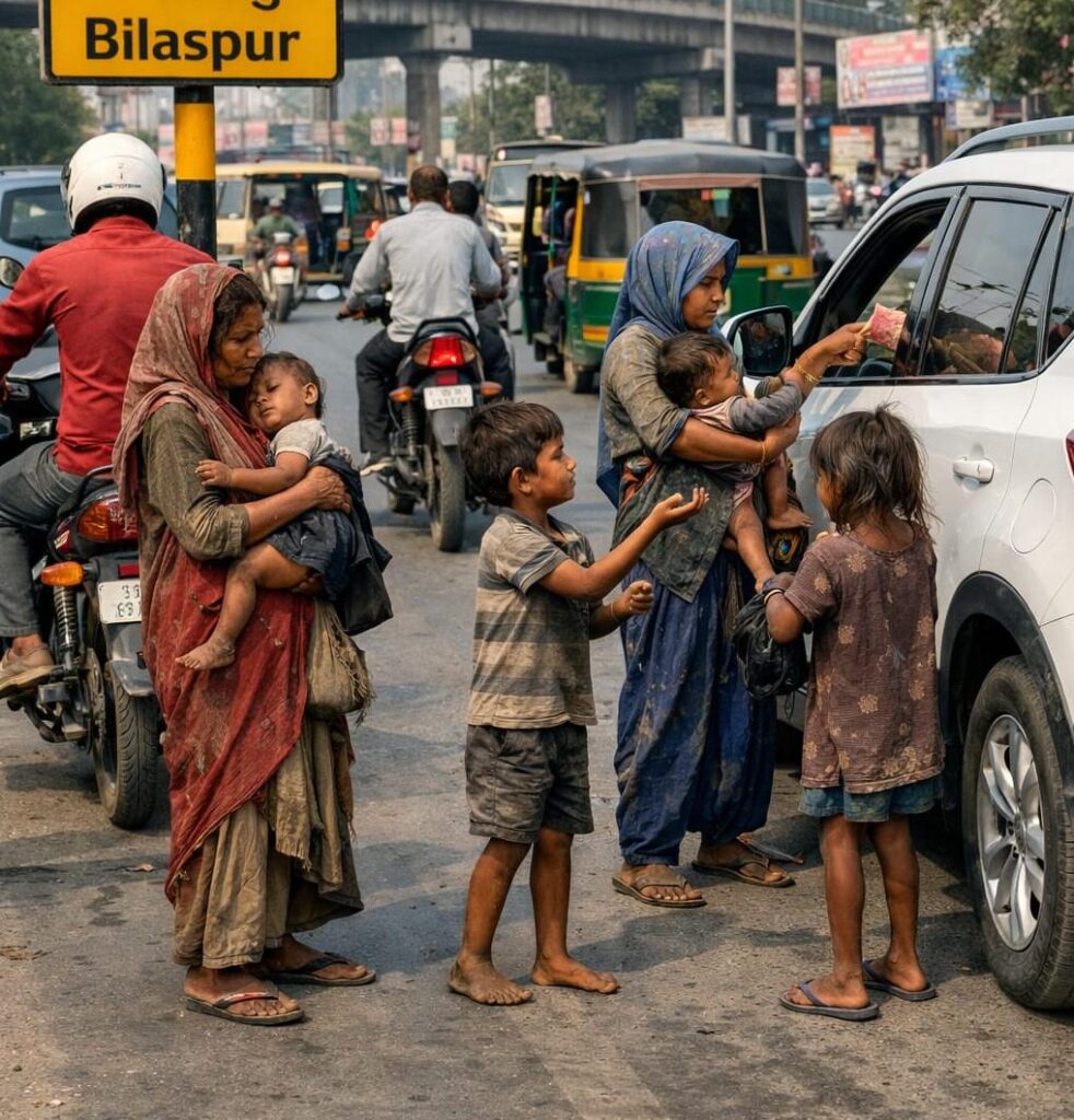 सुरेश सिंह बैस 10 अप्रैल 2026//बिलासपुर। न्यायधानी सहित छत्तीसगढ़ में लगातार भिखारियों की संख्या बढ़ने लगी है। आंकड़ों में पिछले कई सालों में भिखारियों की संख्या दोगुनी हो गई है। शहर हो या गांव सभी जगह भिखारी नजर आने लगे हैं। खासकर बड़े शहरों में सड़कों पर बने सिंग्नलों पर ये भिखारी भीख मांगते नजर आते हैं। अब सवाल यह उठता है कि ये तथाकथित भिखारी क्यों इतनी तादाद में दिखाई देने लगे हैं..? आखिर क्यों बढ़ रही है भिक्षावृत्ति..? अब जबकि केंद्र और राज्य सरकार की योजनाओं के माध्यम से राशन मुफ्त, आवास मुफ्त सहित कई सुविधाओं को आम जनता को फ्री में लाभ दिया जा रहा है है। इसके बावजूद भिक्षावृत्ति लोगों में क्यों बढ़ने लगी है…??