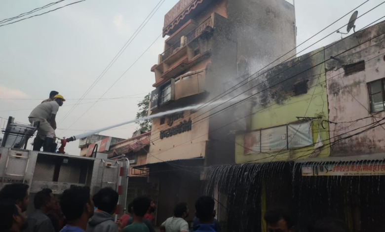 दो दुकानों में लगी भीषण आग, सिलेंडर भी हुआ ब्लास्ट, लाखों का सामान जलकर खाक
